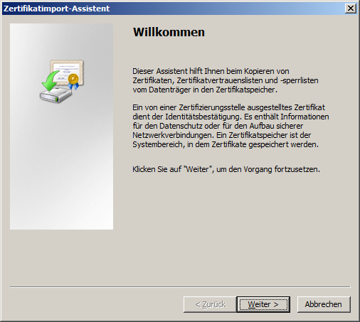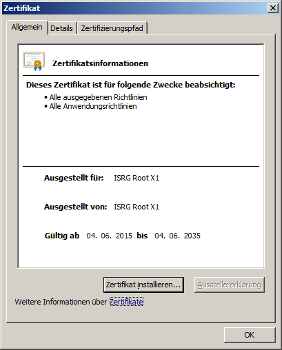 Danach sollte ein Zertifikats-Fenster auf gehen