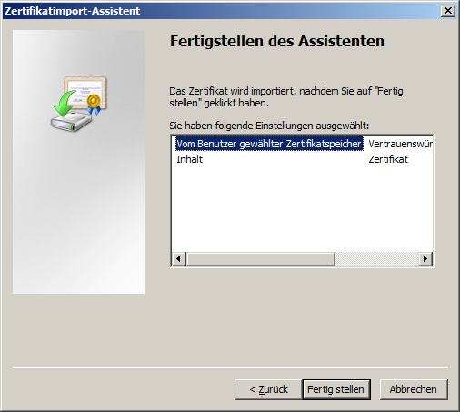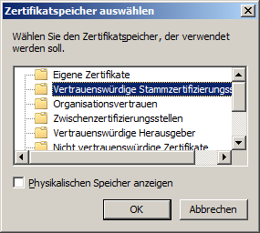 Vertauenswürdige Stammzertifizierungsstellen anwählen, dann